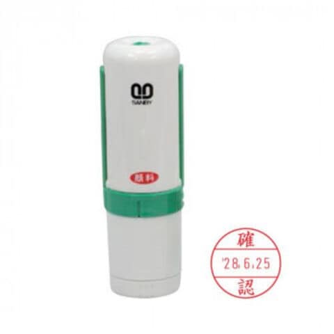 | デスク周りすっきりの浸透式データ印。カバーを開いて歯車を回すだけで簡単に日付を変更できます。日付年号は、元号と略西暦のいずれも表記可能です。 |