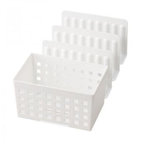 | ボックス・仕切りはそれぞれ連結可能で28cm~45cmの稼働域が出来ます。それぞれの収納量にあわせて仕切りをスライド。向かい合わせて連結させれば、単体で使用できるコの字型スタンドにも。ボックスのメッシュ穴と、仕切りの凹凸で冷気を循環。仕切りの凹凸は食品のくっつきも防ぎます。 |