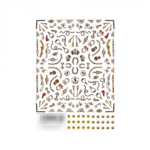 | 馬具モチーフ、フリンジ、ベルトなどが繊細に描かれたネイルシール。おしゃれなスカーフ柄のデザインにおすすめです。 しなやかフィットシート使用。 |