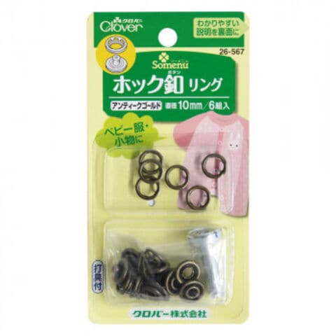 クロバーホック釦リング 10mm アンティークゴールド 26-567