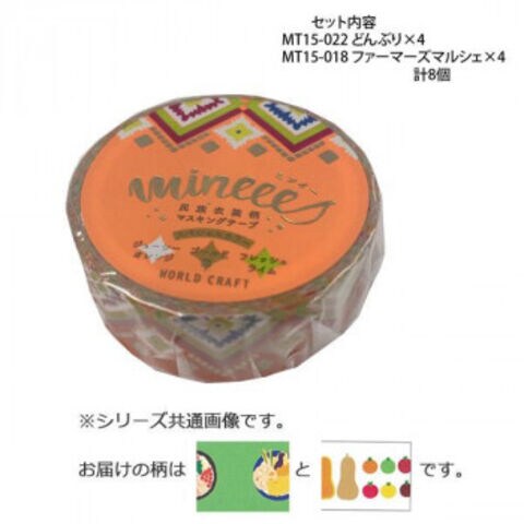 | セット内容 | ・マスキングテープ15mm MT15-022 どんぶり×4 ・マスキングテープ15mm MT15-018 ファーマーズマルシェ×4 |
