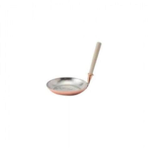 | 熱伝導率が高い銅製です。親子丼やカツ丼づくりに欠かせないアイテムです。 ※こちらの商品は手作業で製作しているため、若干のサイズ誤差が生じる場合がございます。予めご了承ください。 【最初にご使用になる前に】 食器用洗剤をつけたスポンジで洗って、水でよく流し完全に乾かします。 その後、鍋7分目を目安に油を入れて火にかけ、弱火で4~5分煮てください。 (鍋から目を離さぬよう注意してください。) こうする事で油が鍋になじみ、焦げ付きを防ぎます。 煮終わった油には不純物が浮き上がる事があるので、完全に冷めてからお捨てください。 【お手入れ方法】 ●鍋が冷めてから、キッチンペーパー等で内側のくずを取り除き、薄く油を引いて収納してください。 ※油が鍋になじみ、一層焦げ付きにくく使い勝手のよい鍋になります。 ※油が気になる場合、又はしばらくご使用にならない場合には軽くスポンジで洗い、次回使用の際に油馴らしをしてください。 ●外側は、食器用洗剤等を使用してスポンジで洗ってください。 ●焦げ付いた場合、鍋に水を入れ火にかけ、沸騰させた後にスポンジで洗って最初に使用するときと同じように油で煮てください。たわし、クレンザーなどでこするのはおやめください。傷つきの原因になり、またその部分が焦げ付きやすくなります。 ●長期間ご使用にならない場合は、油を引いた後にキッチンペーパー等を内側に引き、かぶせておくことにより長持ちします。 【ご使用上の注意】 ●空焚きは絶対にしないでください。 ●銅は熱伝導率が非常に高いため、火力は弱め(中火~中火以下)に調整してください。 ●内側(銀色の部分)は、たわし、クレンザー、金属製の器具をご使用にならないでください。 ●持ち手がゆるんだ状態でのご使用はおやめください。 ●持ち手部分が熱い時には、鍋つかみ等をご使用ください。 ●鍋の中に調理物を長時間保存しますと錆びの原因になりますので、調理後はすぐに調理物を他の器に移してください。 |