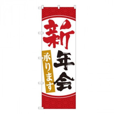 Nのぼり 新年会承ります 赤白 HGR W600×H1800mm 84720