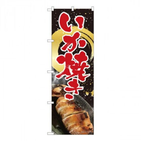 Nのぼり いか焼き 黒 金筆円 SYH W600×H1800mm 82451