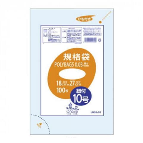 オルディ ポリバッグ 規格袋10号ひも付 透明100P×80冊 186901