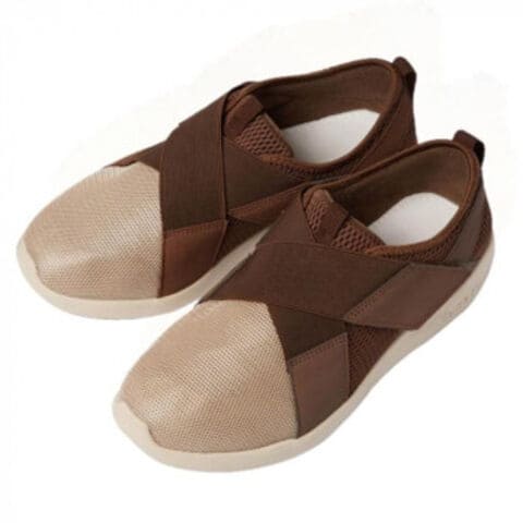 | 普段履きにも使えるツートンカラーのおしゃれでカジュアルなデザインです。靴底には軽量で滑りにくい素材を採用しています。足幅4E、足囲3.5Eとゆったり設計で足のストレスを軽減し、間口がしっかりしているので広がり足を入れやすいです。ベロの落ち込み予防に片側を縫い付けています。 |