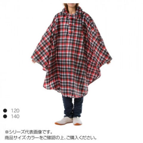 コヤナギ キッズレインポンチョ P-02 チェック赤×黒 120