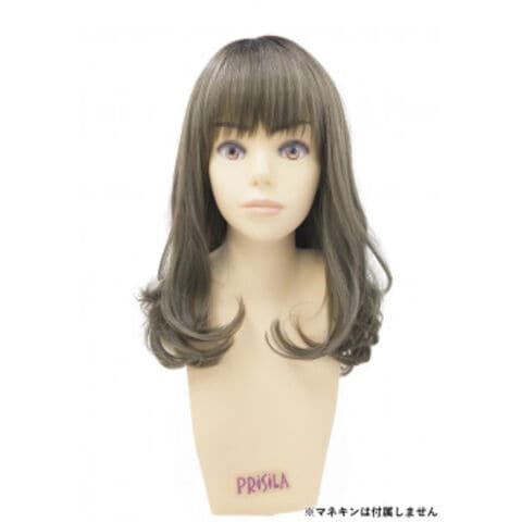 ★プリシラ オールウィッグ グラデ フリルカールミディ CTA-693 耐熱 CTOG・オリーブグレー