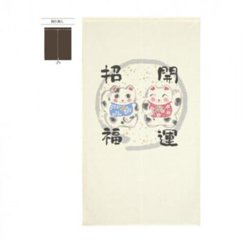 市松柄レースのれん 開運招福招き W850×H1500 42224