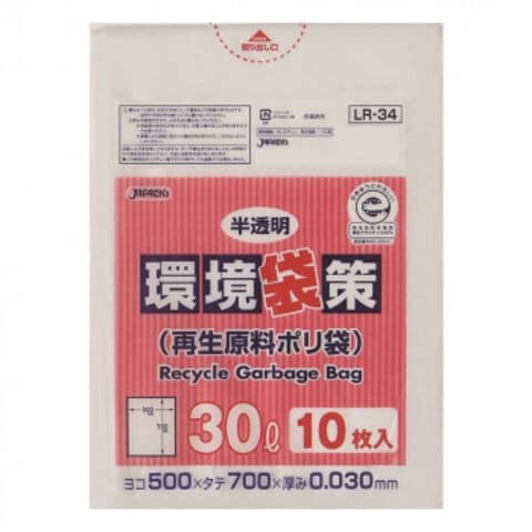 ジャパックス 環境袋策ポリ袋30L 半透明 10枚×30冊 LR34
