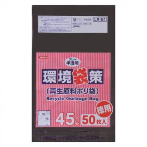 ジャパックス 環境袋策ポリ袋45L グレー半透明 50枚×12冊 LR51