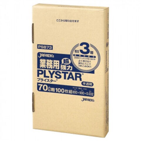 ジャパックス プライスター複合3層ポリ袋70L 半透明 100枚×4箱 PSB73