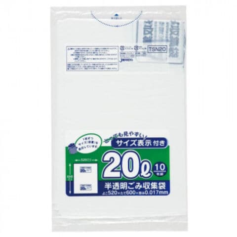 ジャパックス 容量表示入ポリ袋20L レギュラー 白半透明 10枚×60冊 TSN20