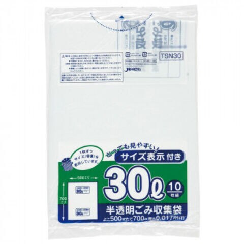 ジャパックス 容量表示入ポリ袋30L レギュラー 白半透明 10枚×60冊 TSN30