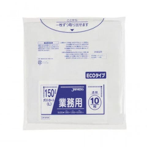 ジャパックス 大型ポリ袋150L 透明 10枚×20冊 DKM98
