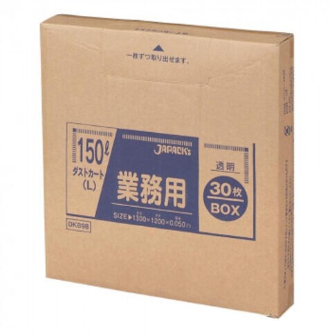 ジャパックス 大型ポリ袋150L ダストカート(L) 透明 30枚×4箱 DKB98