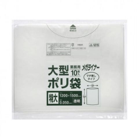 ジャパックス 大型ポリ袋 メガライナー 1200×1500mm 透明 10枚×10冊 JL1215