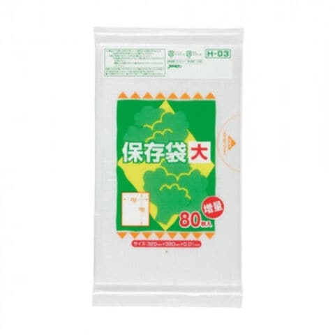 ジャパックス 保存用ポリ袋 大 半透明 80枚×20冊×4箱 H-03