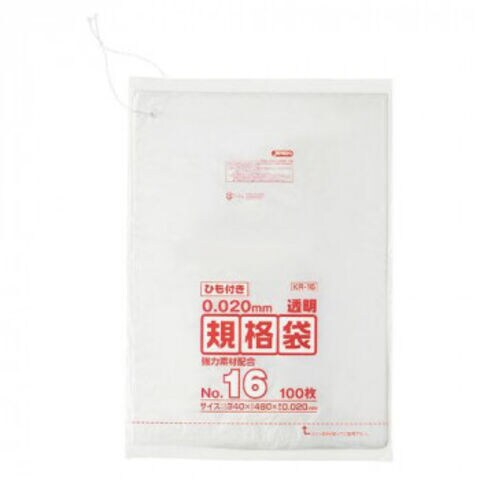 ジャパックス LD規格袋 厚み0.020mm No.16 ひも付き 透明 100枚×5冊×5箱 KR16