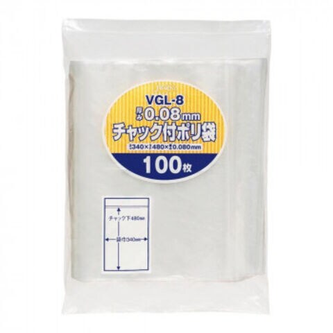 ジャパックス チャック付ポリ袋 厚み0.080mm 透明 100枚×4冊 VGL-8