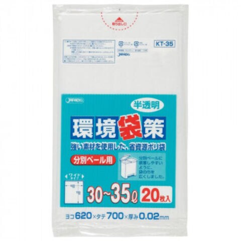 ジャパックス 環境袋策分別ペール用ポリ袋30~35L 半透明 20枚×30冊 KT35