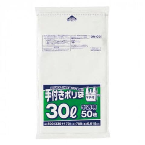 ジャパックス 手付きポリ袋30L 白半透明 50枚×25冊 ON03