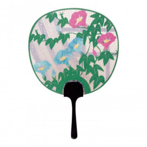 | 特大型飾りうちわ。紗張り両面透かしの技法を使っています。 |