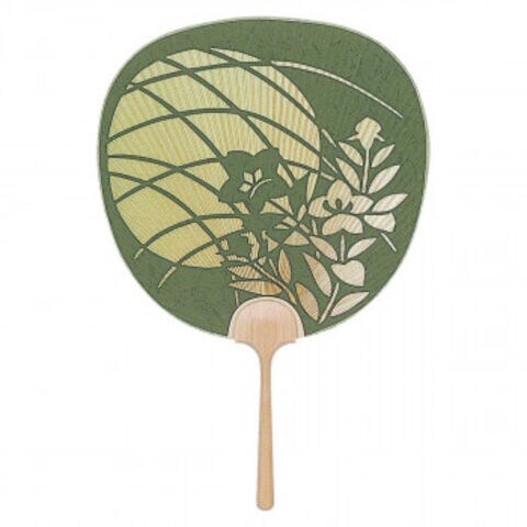 日本製(MADE IN JAPAN) 大型透かしうちわ 観月 (緑) 1111