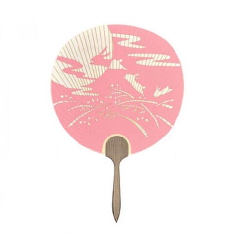 日本製(MADE IN JAPAN) うちわ 十五夜 (ピンク) 片面透かし 2106