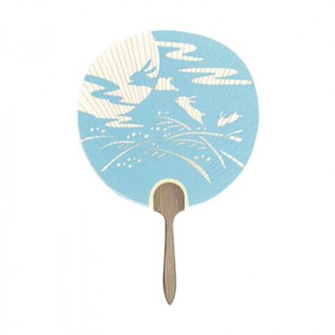 日本製(MADE IN JAPAN) うちわ 十五夜 (水色) 片面透かし 2107
