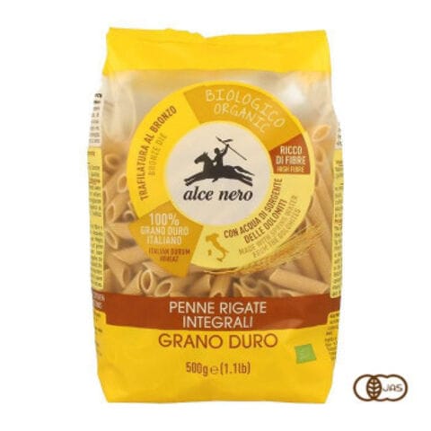 | 小麦を丸ごと挽いた全粒粉のペンネ。食物繊維や小麦の胚芽を含みます。クリーミーなソースやジェノベーゼソースとよく合います。 |