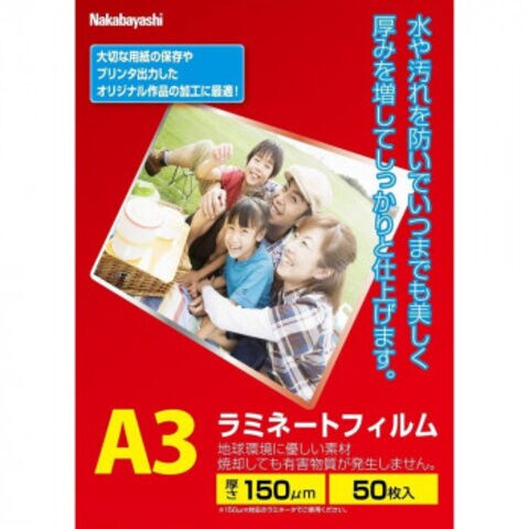 ナカバヤシ ラミネートフィルムE2 150ミクロン50枚A3 LPR-A3E2-15M