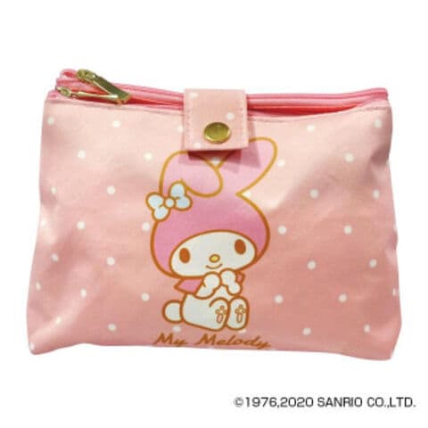 | サンリオのキャラクターが描かれたポーチです。開いたときに立ててミラーが使えます。裏面はティッシュポーチ仕様になっています。 |