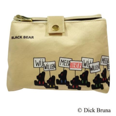 | ブラックベアが描かれたポーチです。開いたときに立ててミラーが使えます。裏面はティッシュポーチ仕様になっています。 |