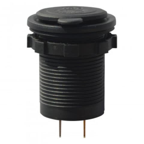 | ハイパワーUSB2ポート(1A+2.1A)。夜間でも見やすいブルーLED。雨やホコリからUSBポートを守る防塵キャップ。ヒューズ付配線キット付属 |