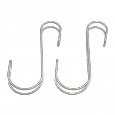 | 横ブレしづらいSカン。二本線の構造になっているため、一本線のS字フックよりパイプにかけたときに横にぶれづらくなっています。 ※万が一に備え、こわれやすいものや、貴重品はかけないでください。 |
