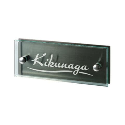 ガラスのような質感がありながら、軽くて割れにくいガラス調アクリルと、ブラックのステンレスのシャープさがクールな表札です。書体を選んでお好みのデザインにできます。取付方法は「化粧ボルト」または「両面テープ」のどちらかをお選びいただけます。