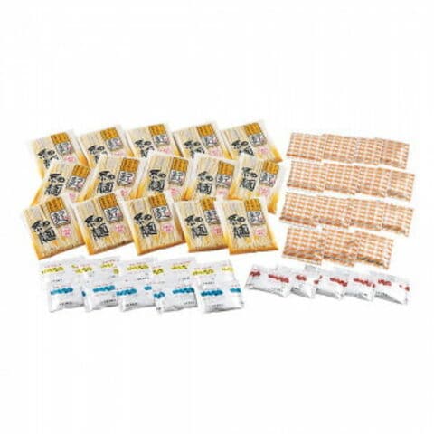 | 内容量 | ラー麦麺80g×15、はかた大将豚骨スープ35g×5、はかた大将醤油スープ35g×5、はかた大将味噌スープ35g×5、ラーメンふりかけ3g×15 |