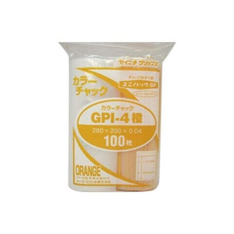 セイニチ チャック付ポリエチレン袋 ユニパック GPカラーチャックタイプ GP I-4 橙 100枚