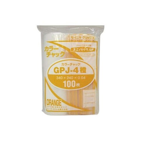 セイニチ チャック付ポリエチレン袋 ユニパック GPカラーチャックタイプ GP J-4 橙 100枚