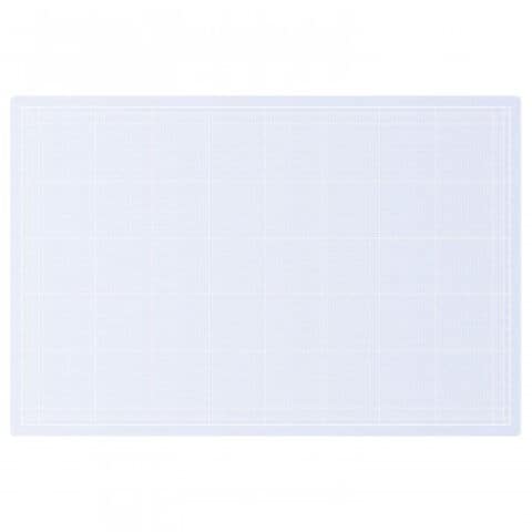 | 乳白色の再生オレフィン樹脂を40%使用した、環境に優しいカッティングマットです。反透光性のあるカッティングマットですので、光源のあるトレース台上で使えます。周囲に1cm間隔の目盛りと、5cm方眼が印刷されているので、簡単に寸法切りができます。 |