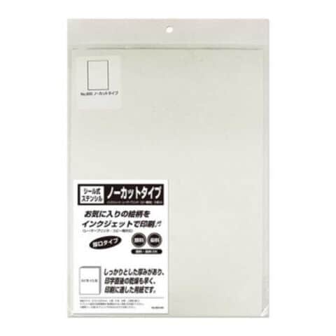 マービーシール式ステンシル・ノーカットタイプはA4判なので、ご自宅のプリンターやコンビニエンスストアなどのコピー機で出力してカットすることも可能です。浮きやズレによる失敗を防ぐため、シール仕様になっており、水性マーカーとの相性も抜群です。厚口ですので、布スプレーを振りかけてもインクが浸透しにくく、細かい絵柄を作成しても破れにくくなっております。