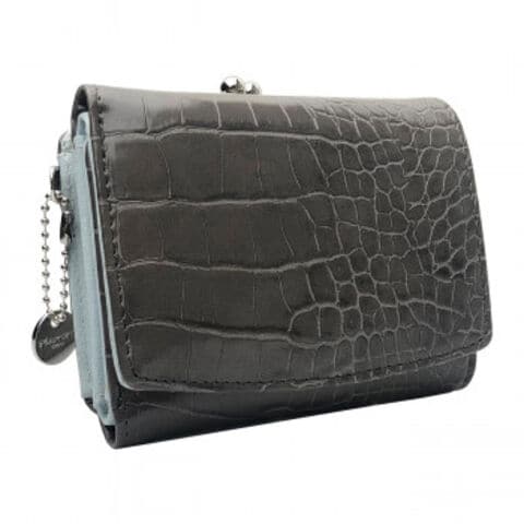 Pisoraro(ピソラロ) クロコ型押し がま口BOXミニウォレット 三つ折り財布 ダークグレー PR115