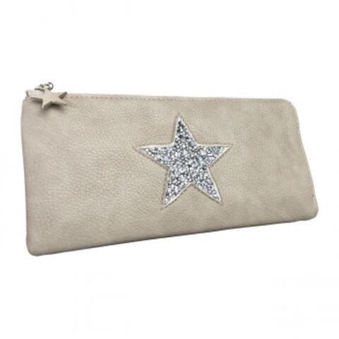ソフトタッチのシュリンク調フェイクレザーに星型のジェリーを施した、薄型Lファスナー長財布。カードを15枚収納しても膨らみを感じさせません。