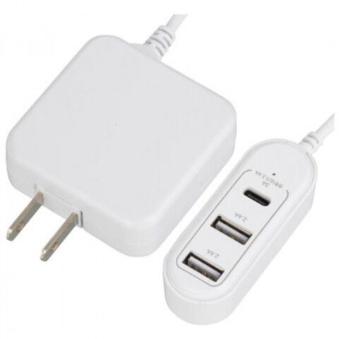 | どのポートに接続してもAndroid/iPhone/iPadの接続機器を自動で見分けて最適な電力で急速充電します(TypeCポート除く)。合計出力最大3.4Aまでの3台同時充電が可能です(急速充電の時は対応している機器で3台合計の出力が3.4Aまで)。充電がUSBType-Cポートのみの場合、最大3.0Aが可能で、充電がUSBType-Aポートのみの場合、最大2.4Aが可能です。 |