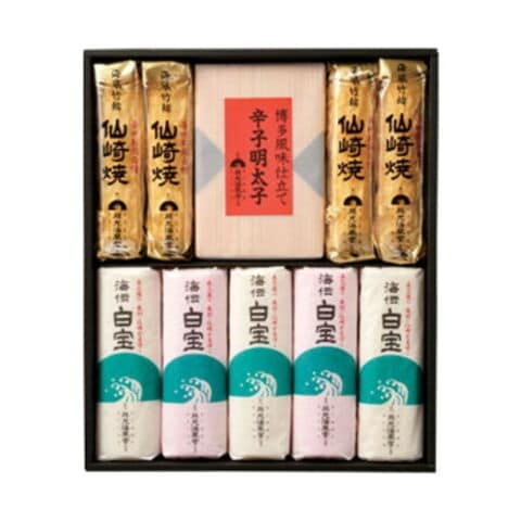 | 内容量 | 白宝(赤2本、白3本)、仙崎焼4本、辛子明太130g |