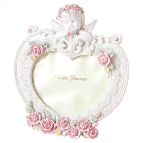 | ローズとエンジェルの付いた、ハート型フォトフレームです。 |