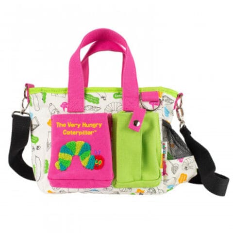 | 世界で人気絵本「はらぺこあおむし」のお散歩バッグです。ペットボトル、ポケットティッシュなどをセット出来るたくさんのポケットがついてます。小さなお子さんやペットとの散歩にいかがでしょうか。 |