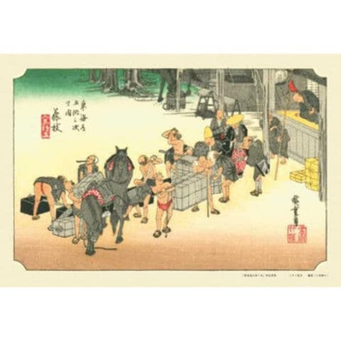 | 歌川広重の代表作「東海道五十三次」(保永堂版)のジグソーパズル。藤枝宿(江戸より二十二宿目)。 |