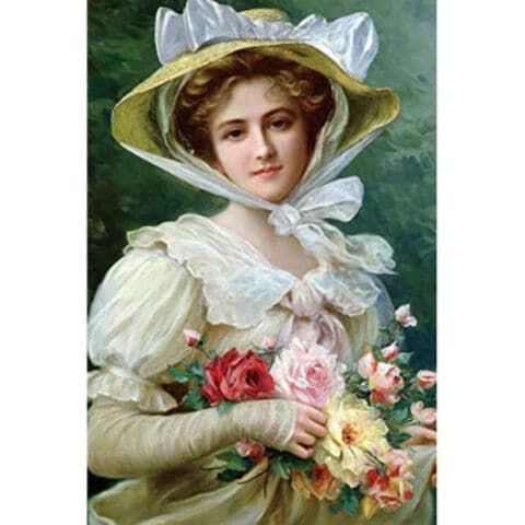 | 花束を持つ貴婦人の絵画は多く存在しますが、このヴァーノンの描くそれはとてもバランスの取れたものであり、パズルを組んで楽しく飾って美しくといった部分でも基本を押さえたジグソー向き絵画です。 |